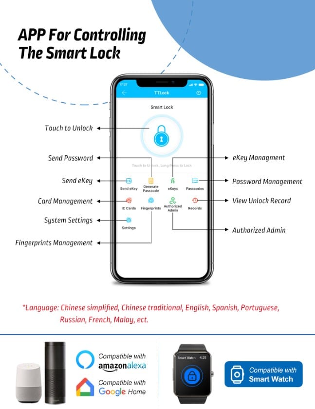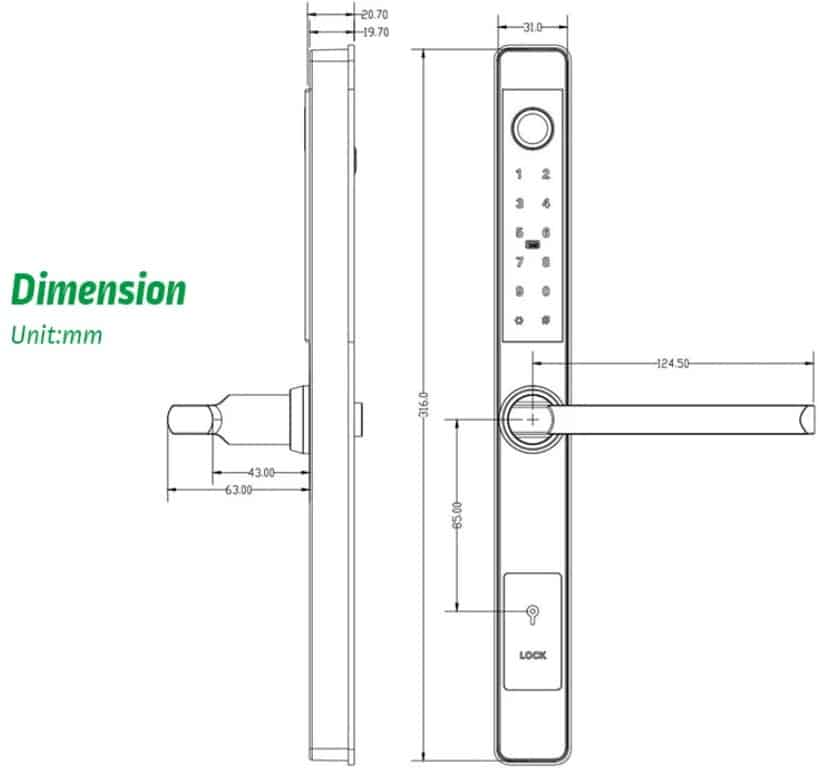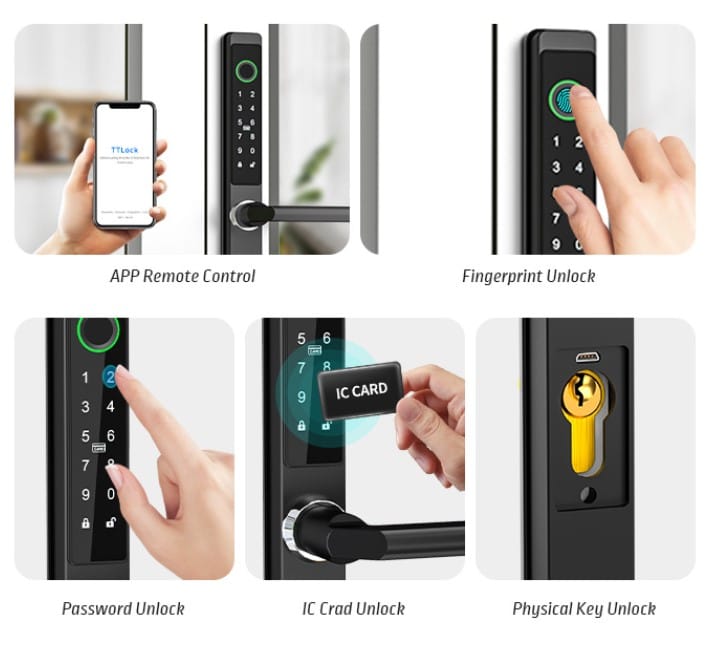 – Multiple methods to access: Keypad, RFid, Fingerprint, Bluetooth App, Mechanical Key, Remote Access (with optional Wifi Gateway)